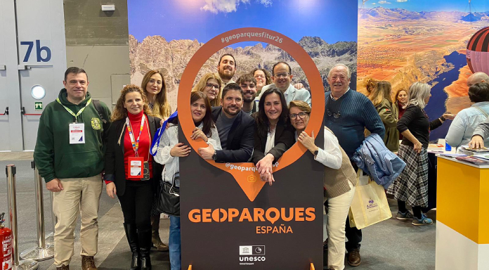 El diputado de Reto Demográfico y Espacios Naturales Protegidos, Javier Díaz Cieza, ha participado en la jornada de hoy en la presentación «Geoparque y Geodisea» en los stand de Extremadura y de Geoparques en FITUR junto al director del Geoparque Villuercas-Ibores-Jara, José María Barrera, la representante de la asociación de empresarios del Geoparque, Mar Domínguez, Óscar Mateos, DG Turismo de la Junta de Extremadura y representantes del territorio.