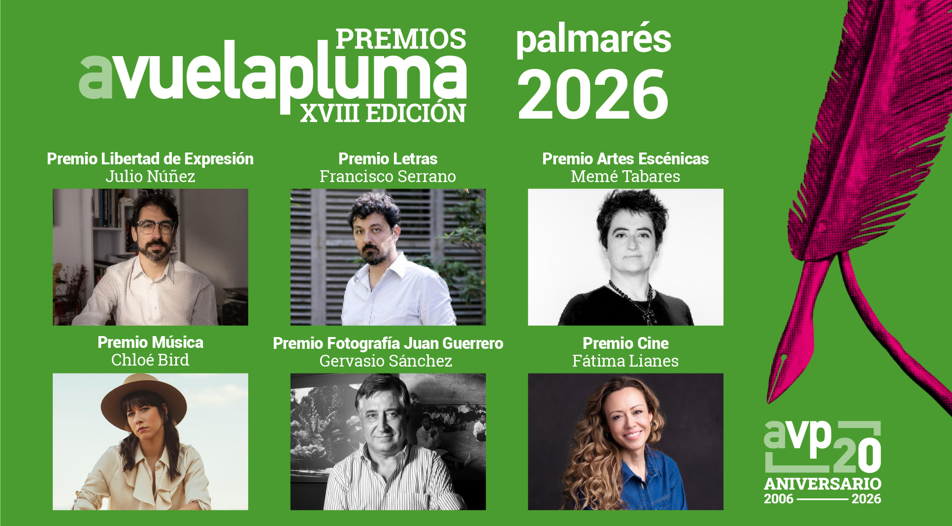 La organización ha confirmado la asistencia de todos los premiados, que recogerán personalmente las tradicionales plumas de hierro forjadas esculpidas por Roberto Iglesias, símbolo de estos galardones. El palmarés de este año reconoce a: